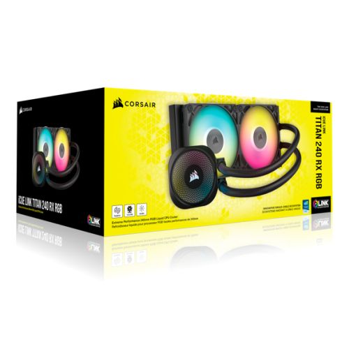 Corsair iCUE LINK TITAN 240 RX RGB Liquid CPU Cooler, RX120 RGB Magnetic Dome Fans, 20 LED Pump Head, iCUE LINK Hub Included, Black