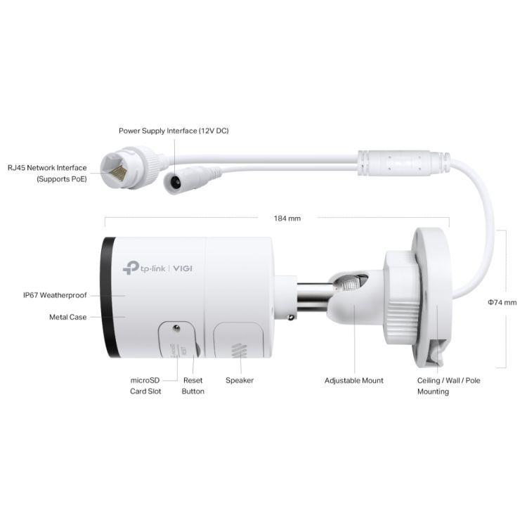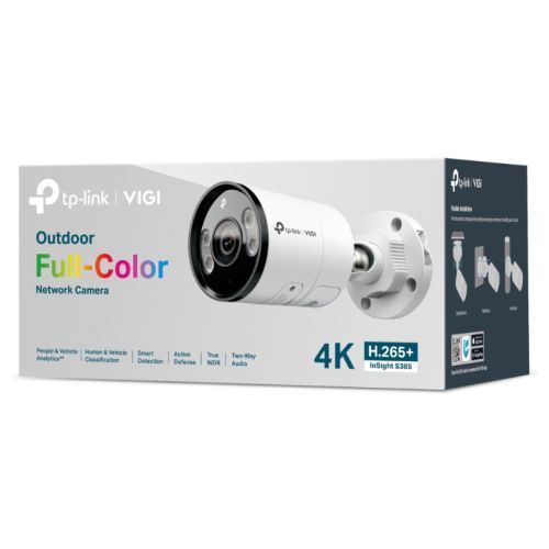 TP-LINK (InSight S385 2.8MM) VIGI 8MP Outdoor Full-Colour Bullet Network Camera w/ 2.8mm Lens, IP67, PoE, AI Detection/Classification, Two-Way Audio, H.265+
