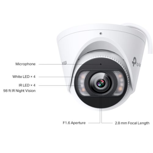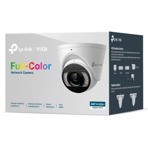 TP-LINK (InSight S445 2.8MM) VIGI 4MP Full-Colour Turret Network Camera w/ 2.8mm Lens, IP67, PoE, AI Detection/Classification, Two-Way Audio, H.265+