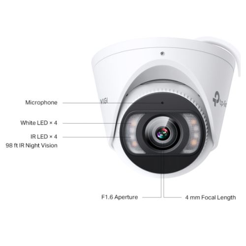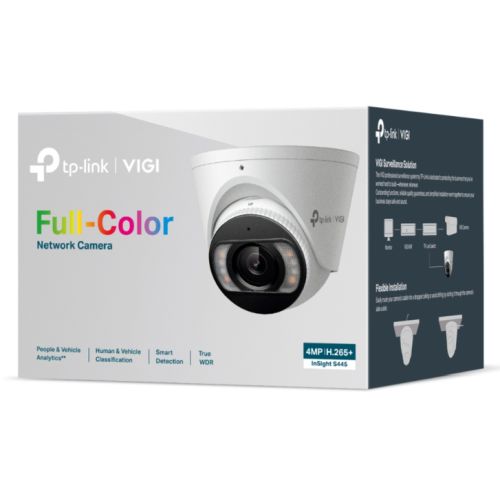 TP-LINK (InSight S445 4MM) VIGI 4MP Full-Colour Turret Network Camera w/ 4mm Lens, IP67, PoE, AI Detection/Classification, Two-Way Audio, H.265+