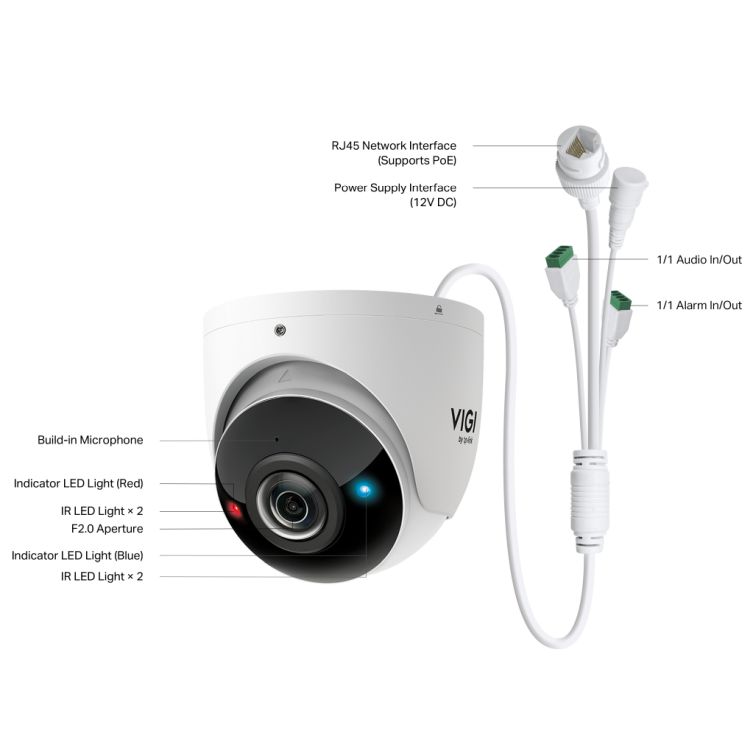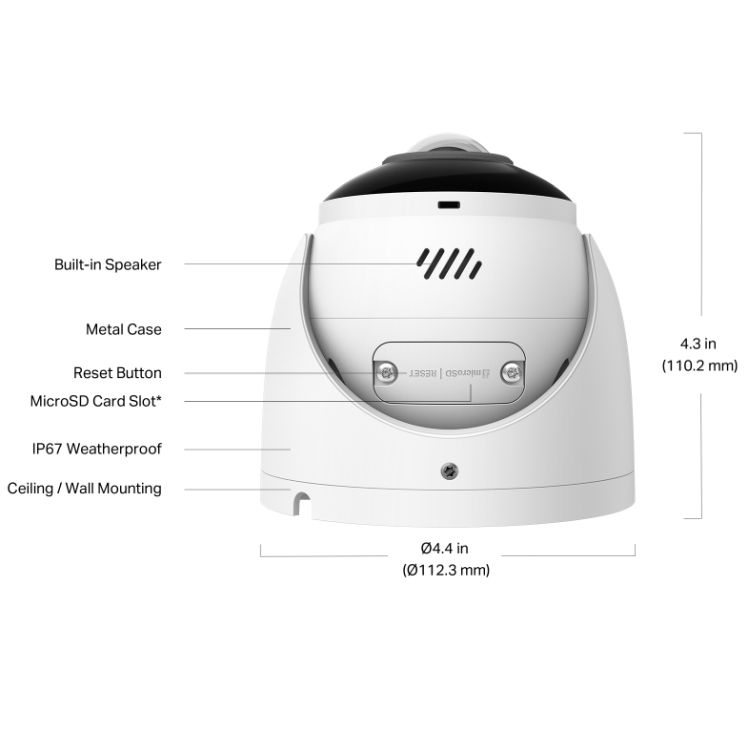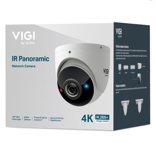 TP-LINK (InSight S485PI) VIGI 8MP Outdoor IR Panoramic Turret Network Camera, IP67, PoE, 180° Panorama, AI Detection/Classification, Red-Blue Warning Lights