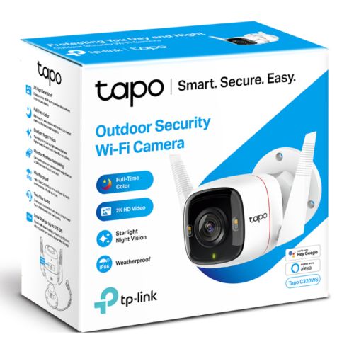 TP-LINK (TAPO C320WS) Outdoor Security Wi-Fi Camera, Wired/Wireless, Ultra HD, Night Vision, Motion Detection, Alarms, 2-way Audio, Voice Control, SD Card Slot