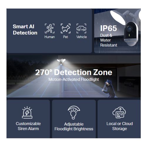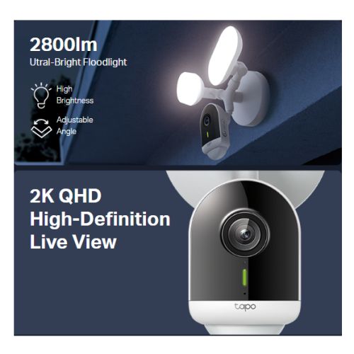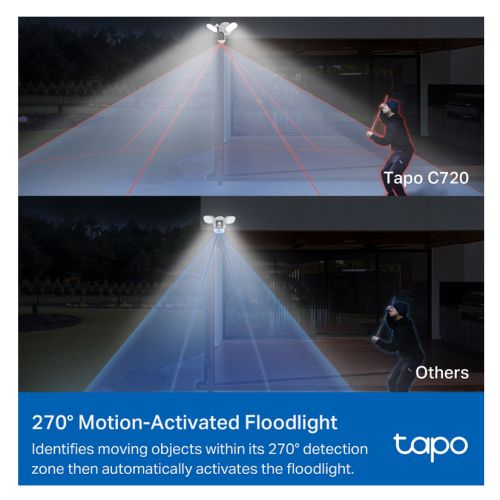 TP-LINK (TAPO C720) Wireless 2K QHD Smart Floodlight Outdoor Security Camera, Motion-Activated Floodlight, AI Detection, Custom Alarms, IP65