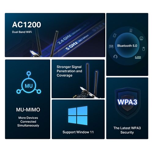Mercusys (MA30E) AC1200 Dual Band Wi-Fi Bluetooth PCI Express Adapter, Bluetooth 5.0, MU-MIMO, WPA3 Security