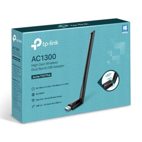 TP-LINK (Archer T3U Plus) AC1300 (867+400) High Gain Wireless Dual Band USB Adapter, USB 3.0, MU-MIMO