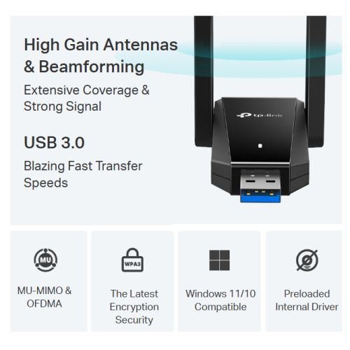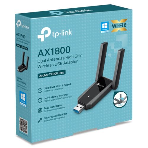 TP-LINK (Archer TX30U Plus) AX1800 Dual Antennas High Gain Wi-Fi 6 USB Adapter, Dual Band, USB 3.0, MU-MIMO, OFDMA, WPA3